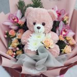 “Букет з Ведмежа” – під назвою “Елегантне втілення розкоші”. Цей неперевершений композиційний шедевр- букет, поєднує в собі пристрасні троянди, які втілюють силу кохання та вогненну пристрасть. Вони гармонійно переплітаються з ніжними квітами екзотичних орхідей, створюючи атмосферу розкіші та вишуканості. Кожна квітка букету вибрана з особливою увагою до деталей, а зелені акценти додають композиції неповторності та шарму. Цей букет виражає найвищий рівень стилю і буде вражати навіть найвимогливіших покупців своєю неперевершеною красою.
