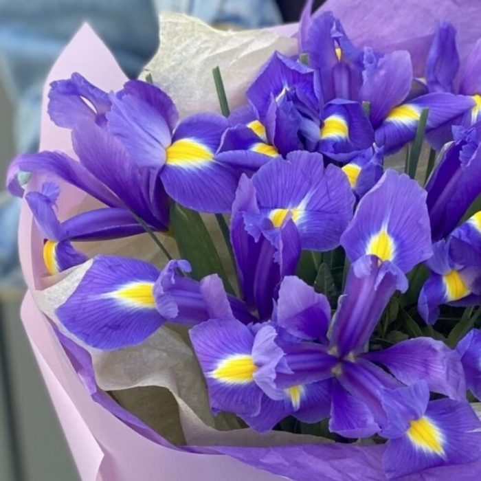 Ирис – 9 шт.Лента атласная – 2 шт.Упаковка дизайнерская – 2 шт.