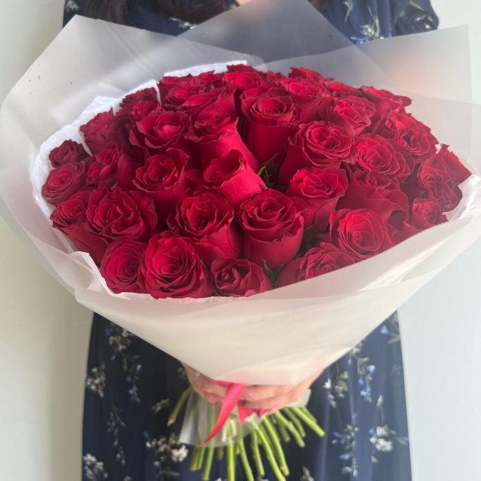 Букет 51 красная роза (Кения) в стильной упаковке