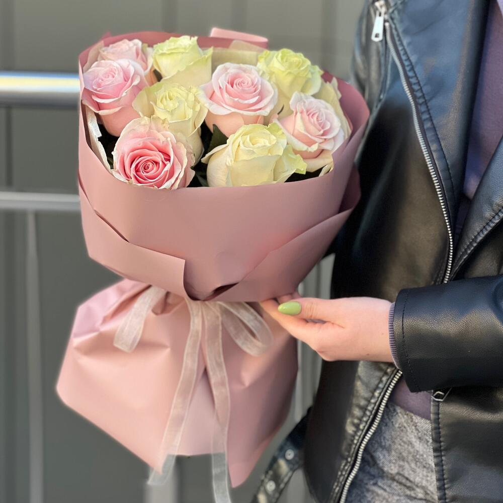 Букет из 9 белых и розовых роз