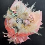 Вечностойкий букет из пионов, роз и кортадерии в пышной дизайнерской упаковке