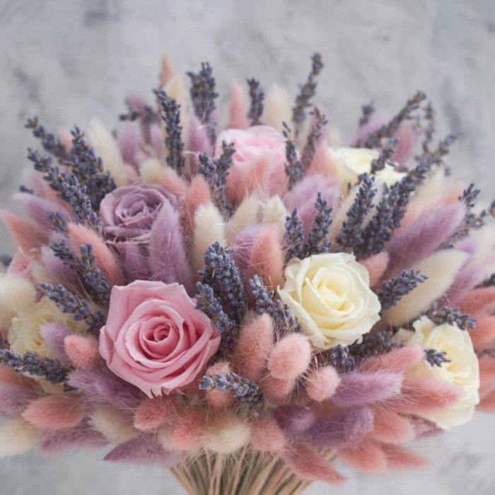 Розы с лавандой и лагурусом