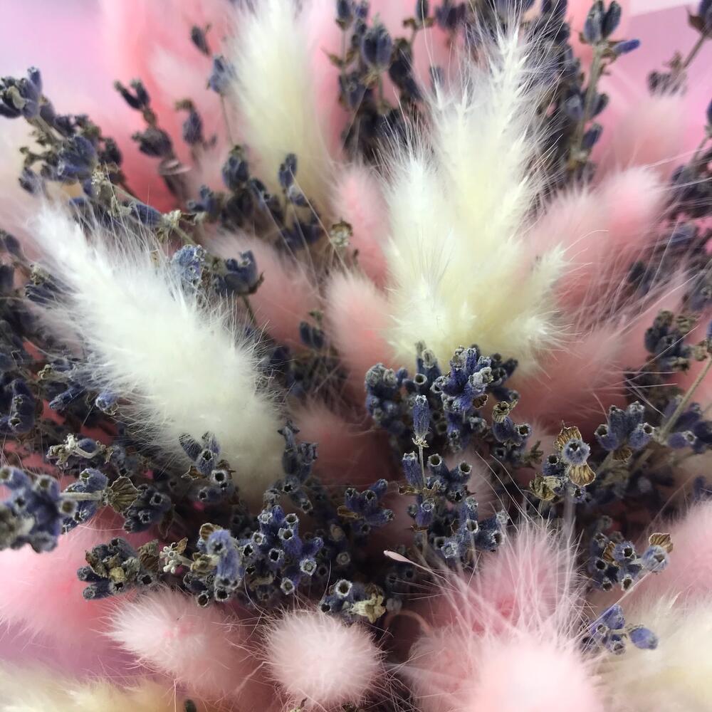 «Лавандовое созвездие» Букет из розы, гвоздики, статица и хлопка